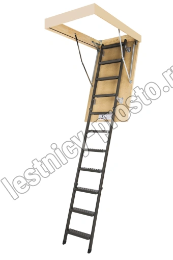 Чердачная металлическая лестница LMS – это надежная складная конструкция, состоящая из марша и термоизоляционной крышки, изготовленной из ДВП и окрашенной в бежевый цвет. Герметичность всей конструкции достигается благодаря утеплению крышки люка и контурному уплотнению по периметру, что предотвращает возможные теплопотери. Чердачную лестницу очень легко разложить и сложить благодаря наличию специального стержня с четырехугольной насадкой. Установленные в лестнице угловые петли-шарниры нового образца придают ей высокую прочность и надежность, а также предохраняют короб от возможной деформации. Основное преимущество чердачной складной металлической лестницы LMS сводится к ее небольшим габаритам при сохранении высокой функциональности, прочности, надежности и эстетичности конструкции. Монтировать лестницу очень просто, для этого не придется затрачивать много времени и сил. Применение лестничной конструкции этого типа позволяет существенно экономить пространство. Монтажный комплект LXK в комплекте не поставляется.