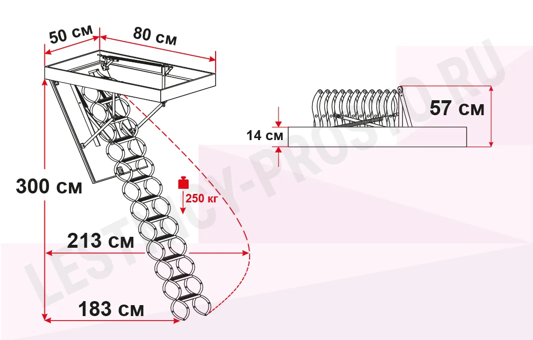 Чердачная лестница с люком OMAN NOZYCOWE 50х80 см, h-300 см