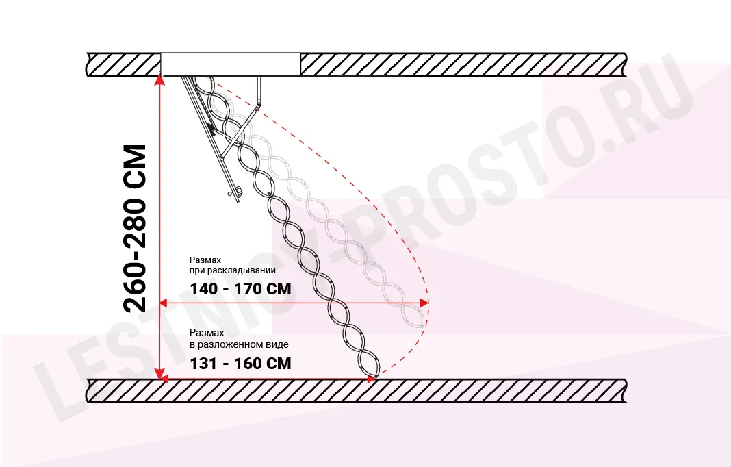 Чердачная термоизоляционная ножничная лестница FAKRO LST 60×90 см, h-280 см