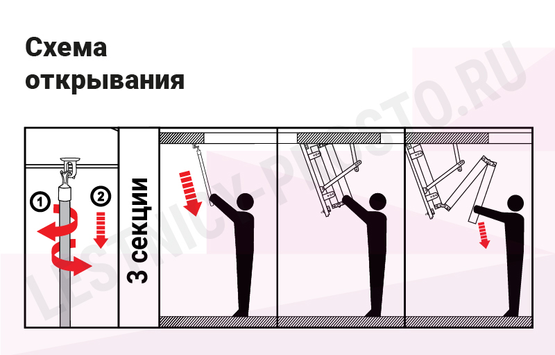 Лестница складная трехсекционная. Рабочая поверхность полностью выполнена из металла и покрашена порошковой краской. Термоизоляционная крышка типа "сэндвич", толщиной 47 мм, утеплена пенопластом, облицована с двух сторон ДCП белого цвета.
