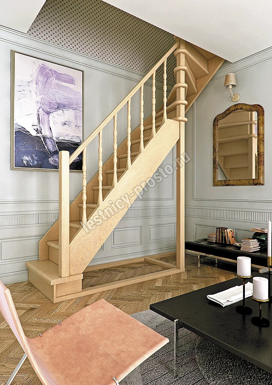 Деревянная межэтажная лестница ЛЕС-215, Лиственница