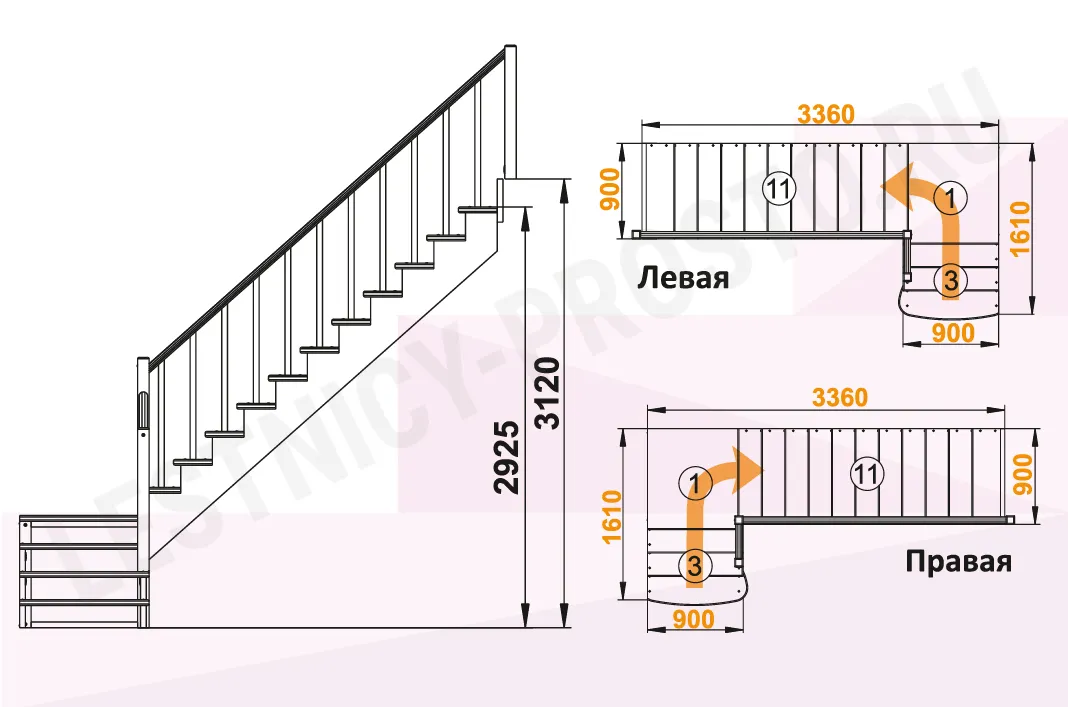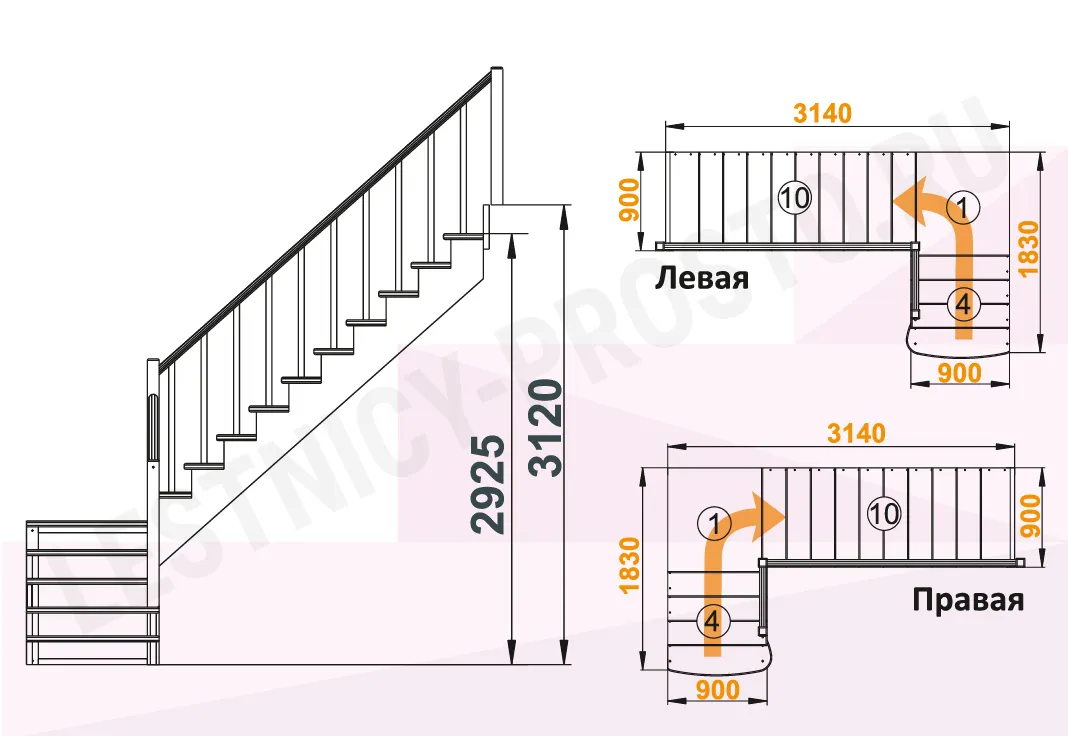 | Лестница из сосны К-002М/1 с подступёнками под покраску |