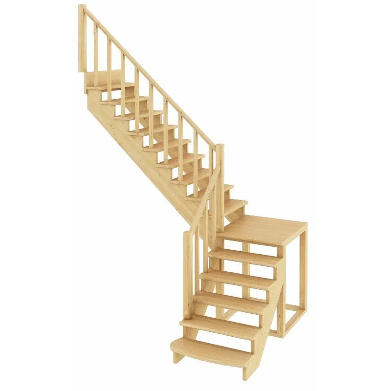 Базовый комплект включает в себя деревянные элементы лестницы без какого-либо покрытия. Лестница поставляется в разобранном виде.