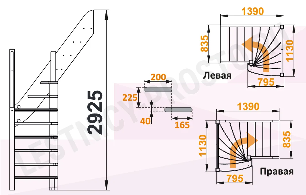 У лестницы  10 вариантов размера