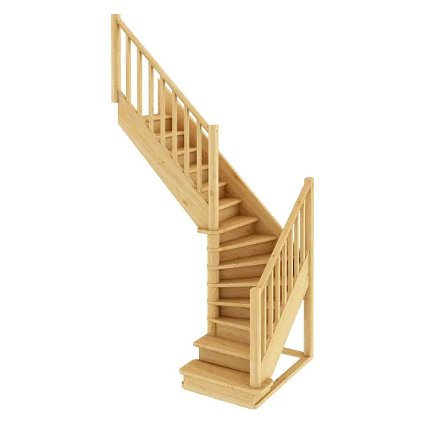 Компактная комфортная лестница с подступенками. Базовый комплект включает в себя деревянные элементы лестницы без какого-либо покрытия. Лестница поставляется в разобранном виде.