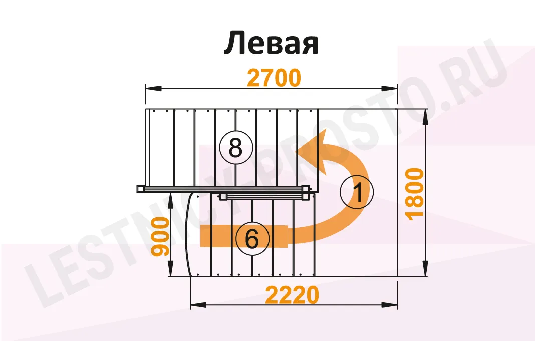 Схема лестницы К-004М/3 с поворотом налево