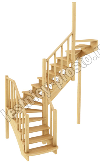 Ступени и поручень лестницы выполнены из бука, остальные элементы из сосны.