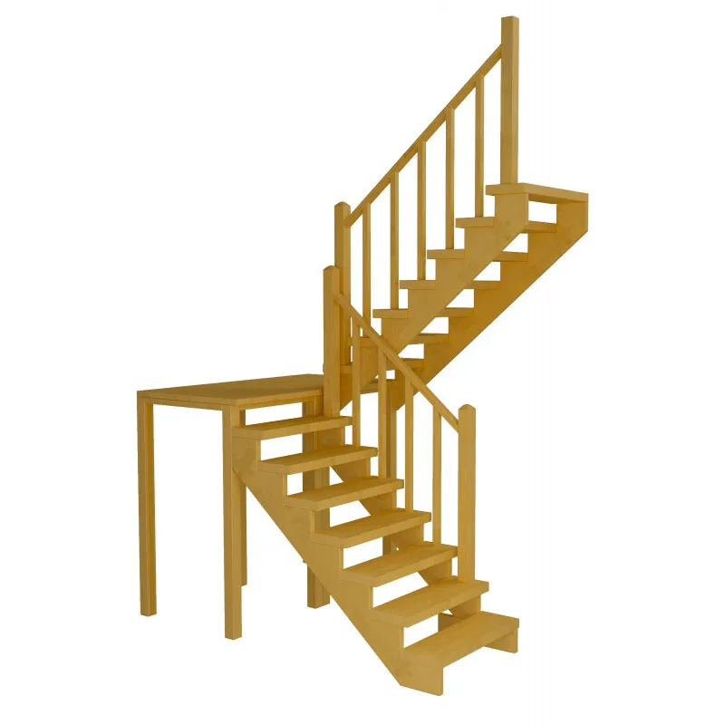 Базовый комплект включает в себя деревянные элементы лестницы и ограждения ;без какого-либо покрытия.