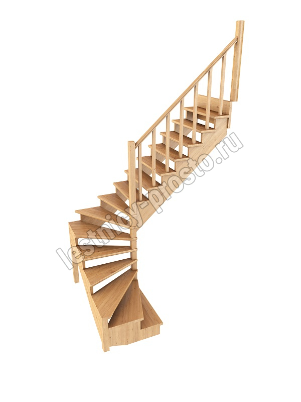 Ступени и поручень лестницы изготовлены из сращенного дуба; тетивы, столбы, балясины - из сосны. Возможно изготовление данной модели полностью из дуба. Базовый комплект включает в себя деревянные элементы лестницы и ограждения без какого-либо покрытия.