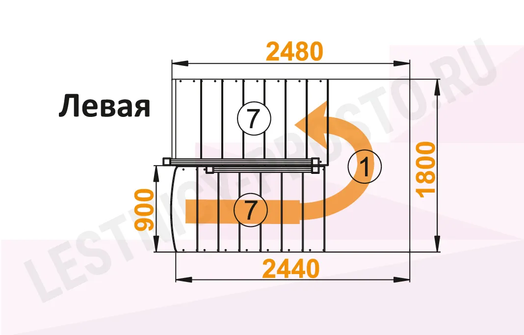 Схема лестницы К-004М/1 с поворотом налево