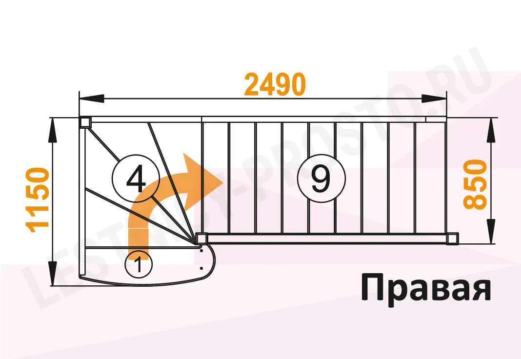 Схема лестницы ЛС-07М/2 с поворотом направо
