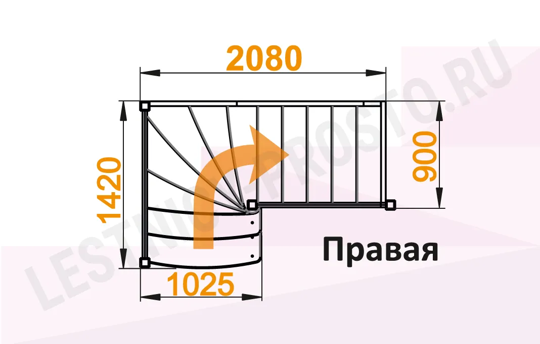 Схема лестницы ЛС-09М/2 с поворотом направо