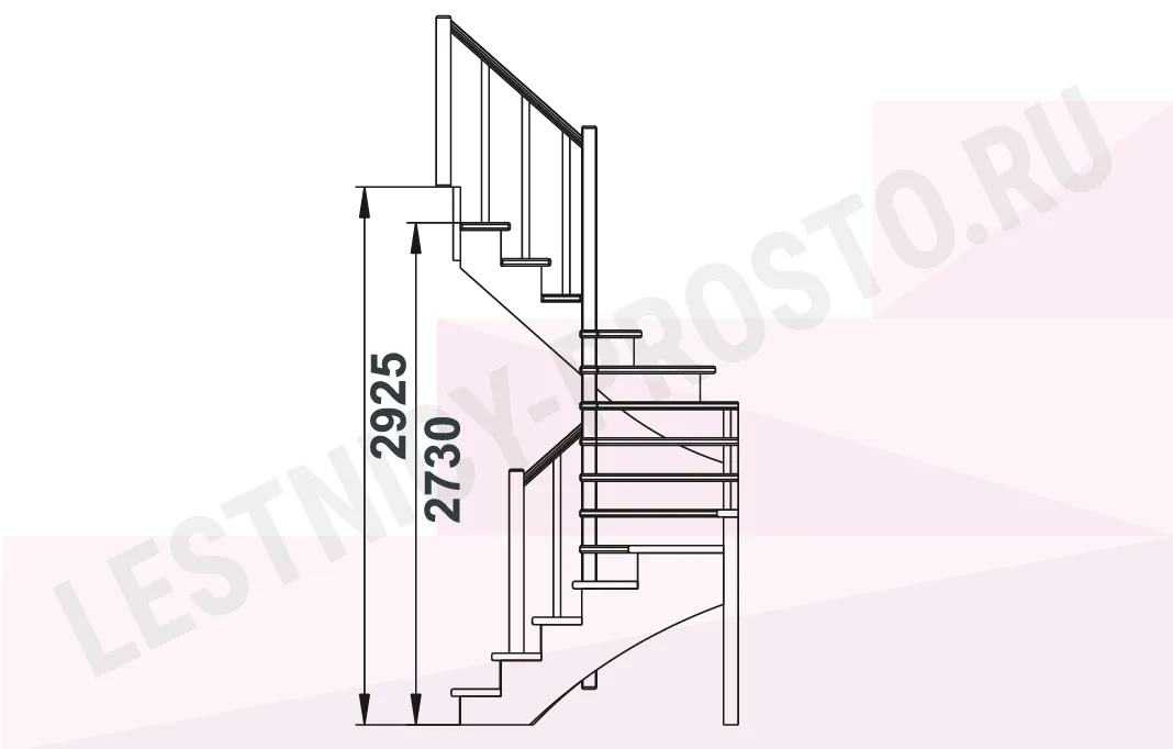 Схема лестницы К-003М/2 с поворотом налево