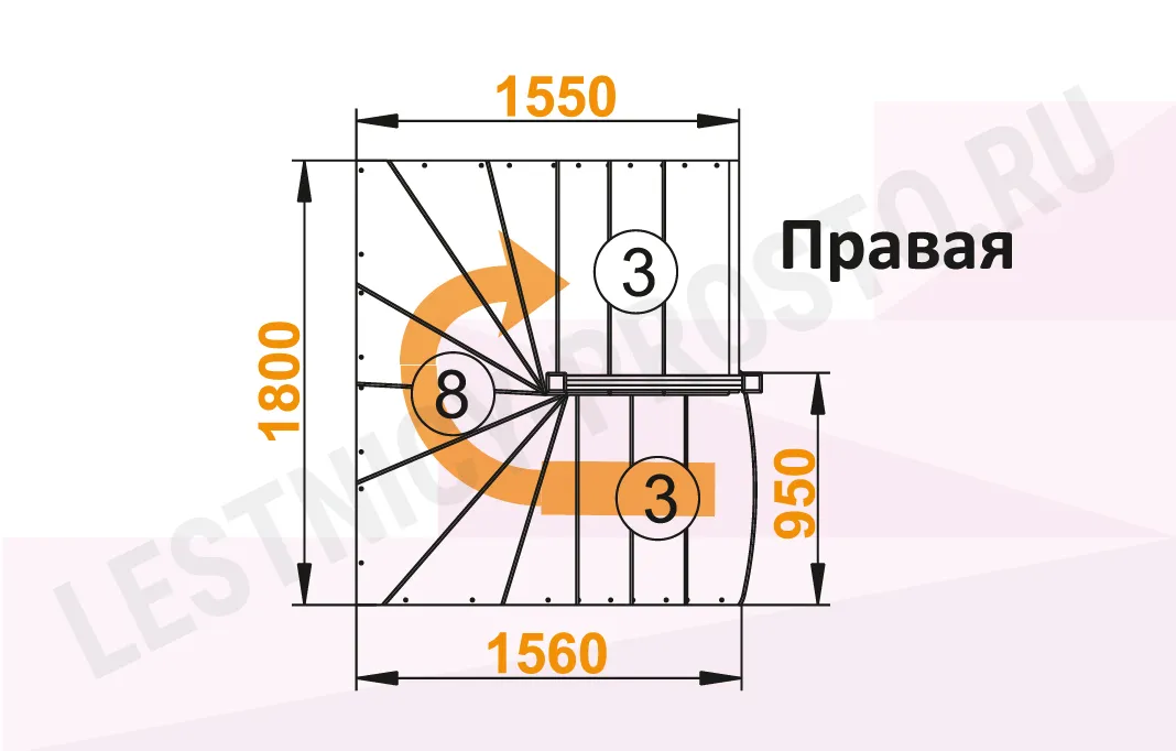 Схема лестницы К-003М/2 с поворотом направо