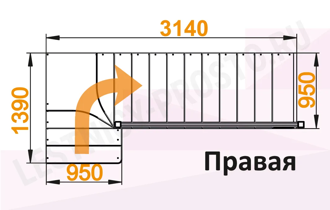 Схема лестницы К-031М/3 с поворотом направо