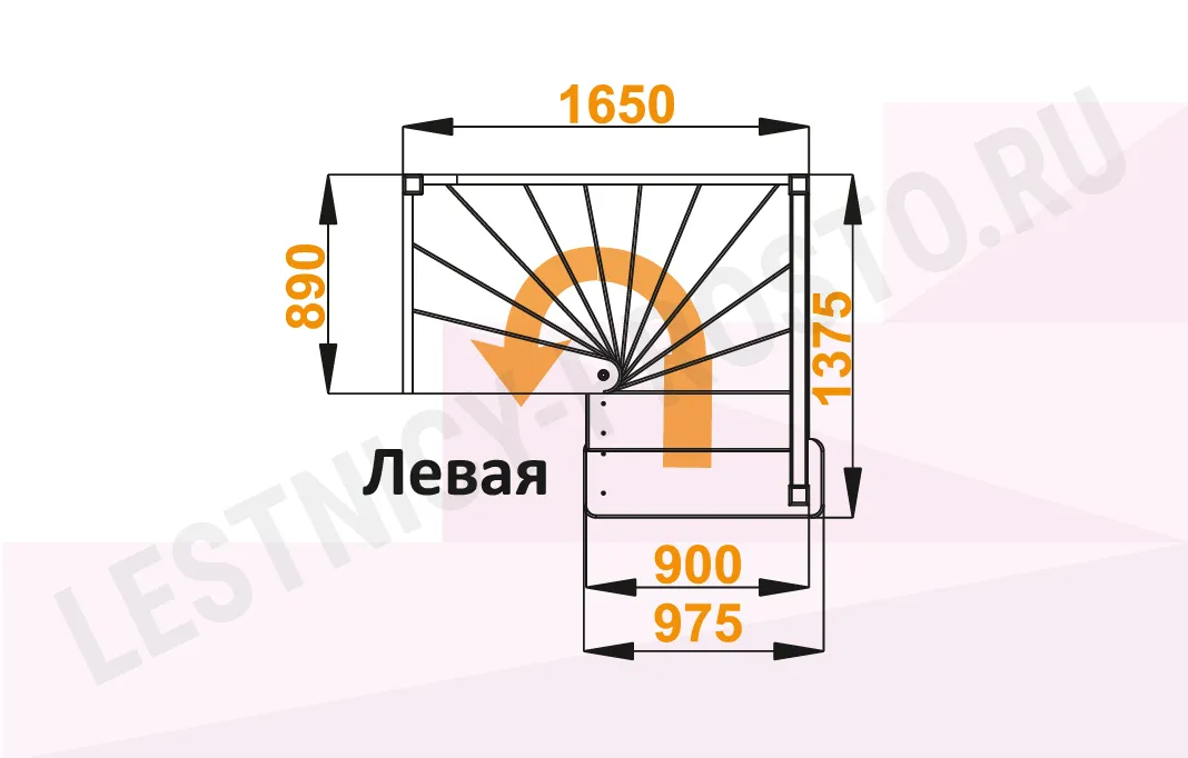 Схема лестницы ЛС-05М с поворотом налево