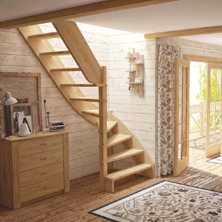 Ступени и поручень лестницы изготовлены из ясеня, остальные элементы из сосны.