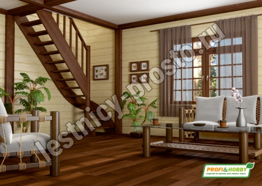Ступени и поручень лестницы изготовлены из ясеня, остальные элементы из сосны.