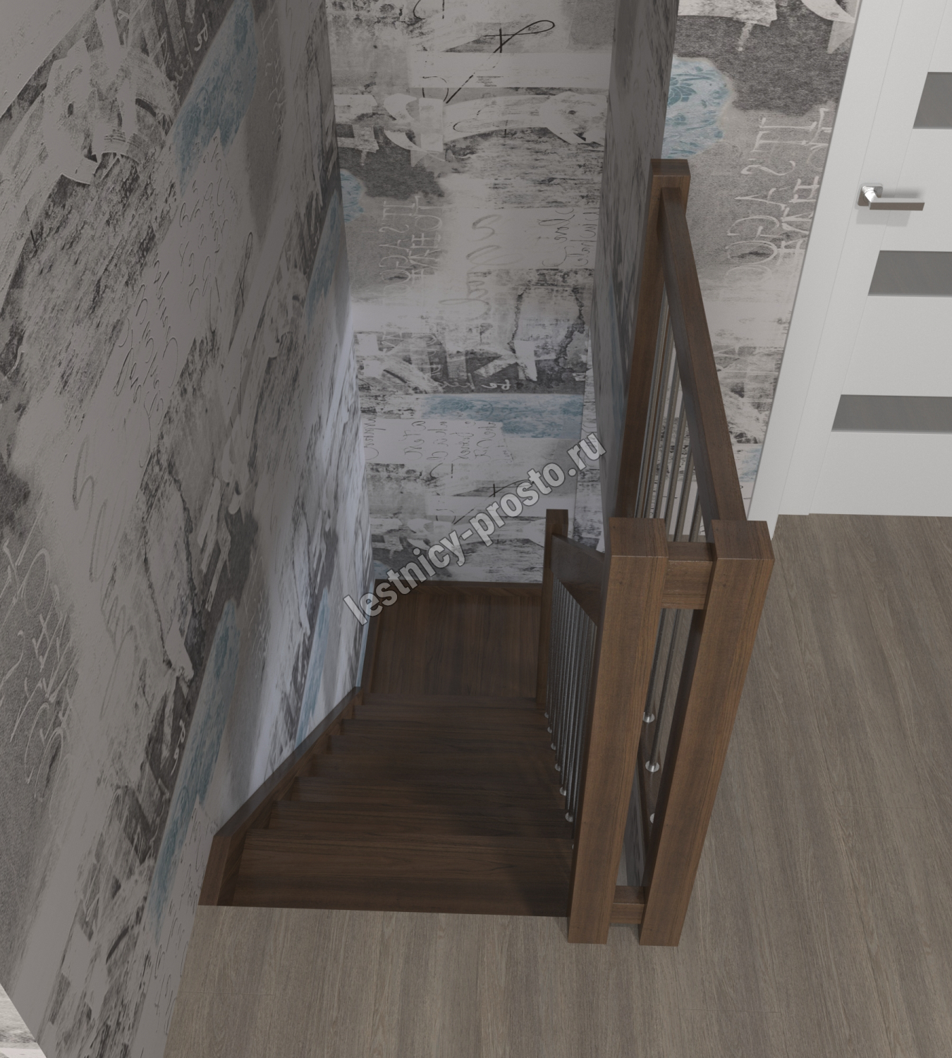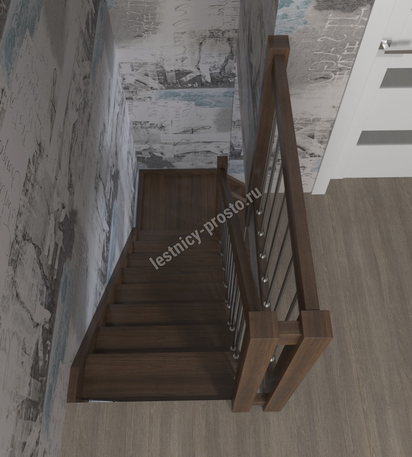 Лестница Prosto Console г-образная забежная бук, h292.5 см (12 ступеней)