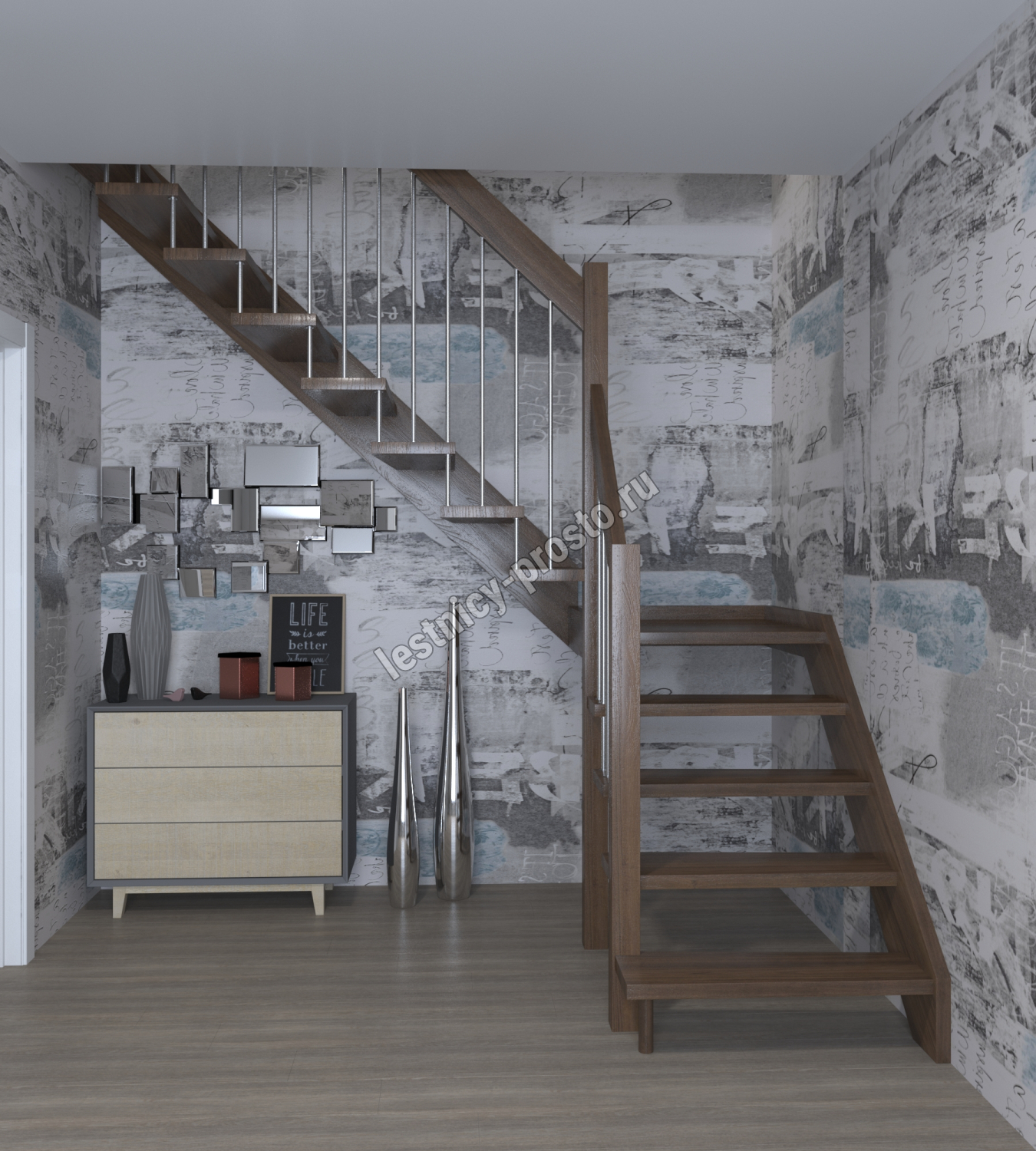 Лестница Prosto Console г-образная забежная сосна, h292.5 см (12 ступеней)