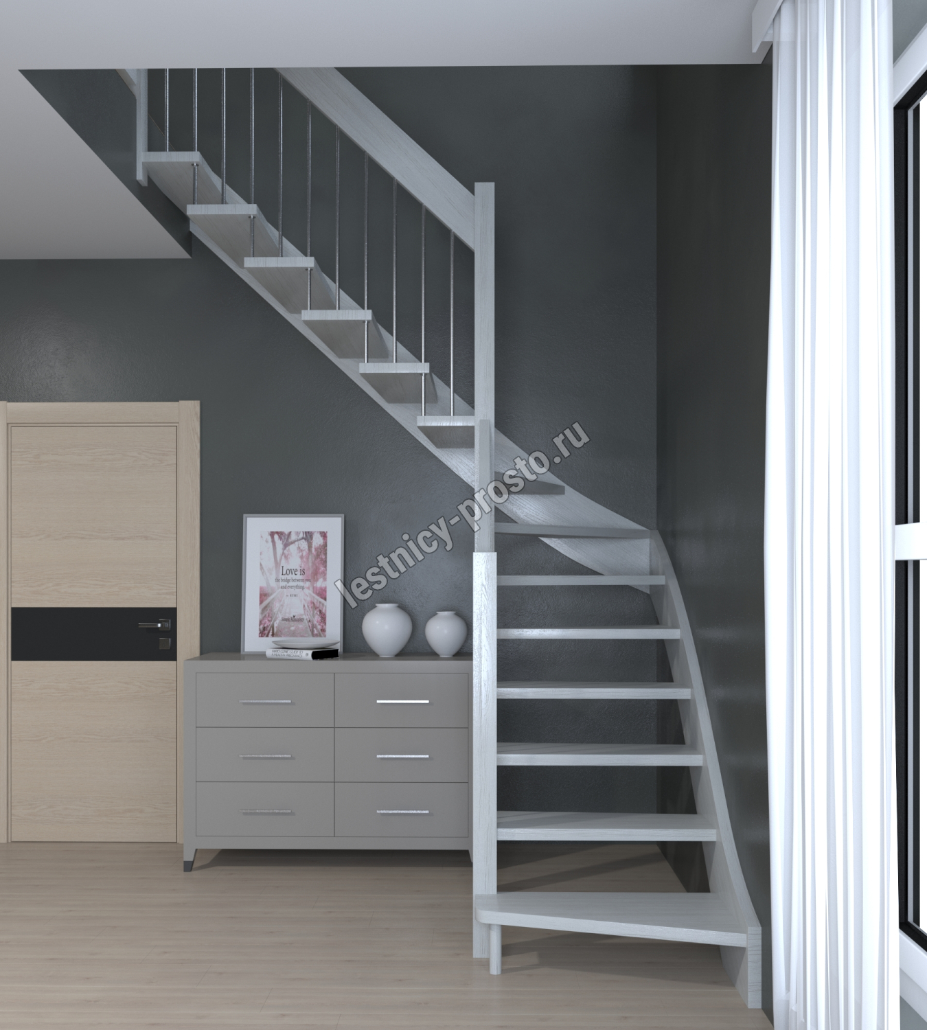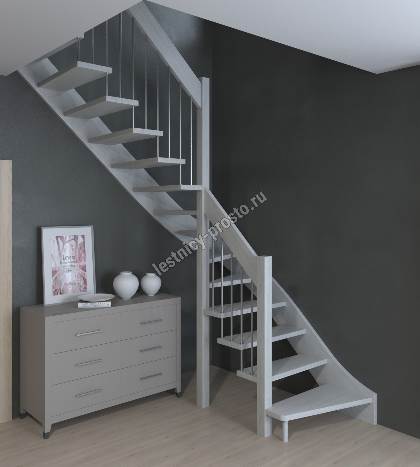 Лестница Prosto Console г-образная забежная ясень, h225 см (9 ступеней)