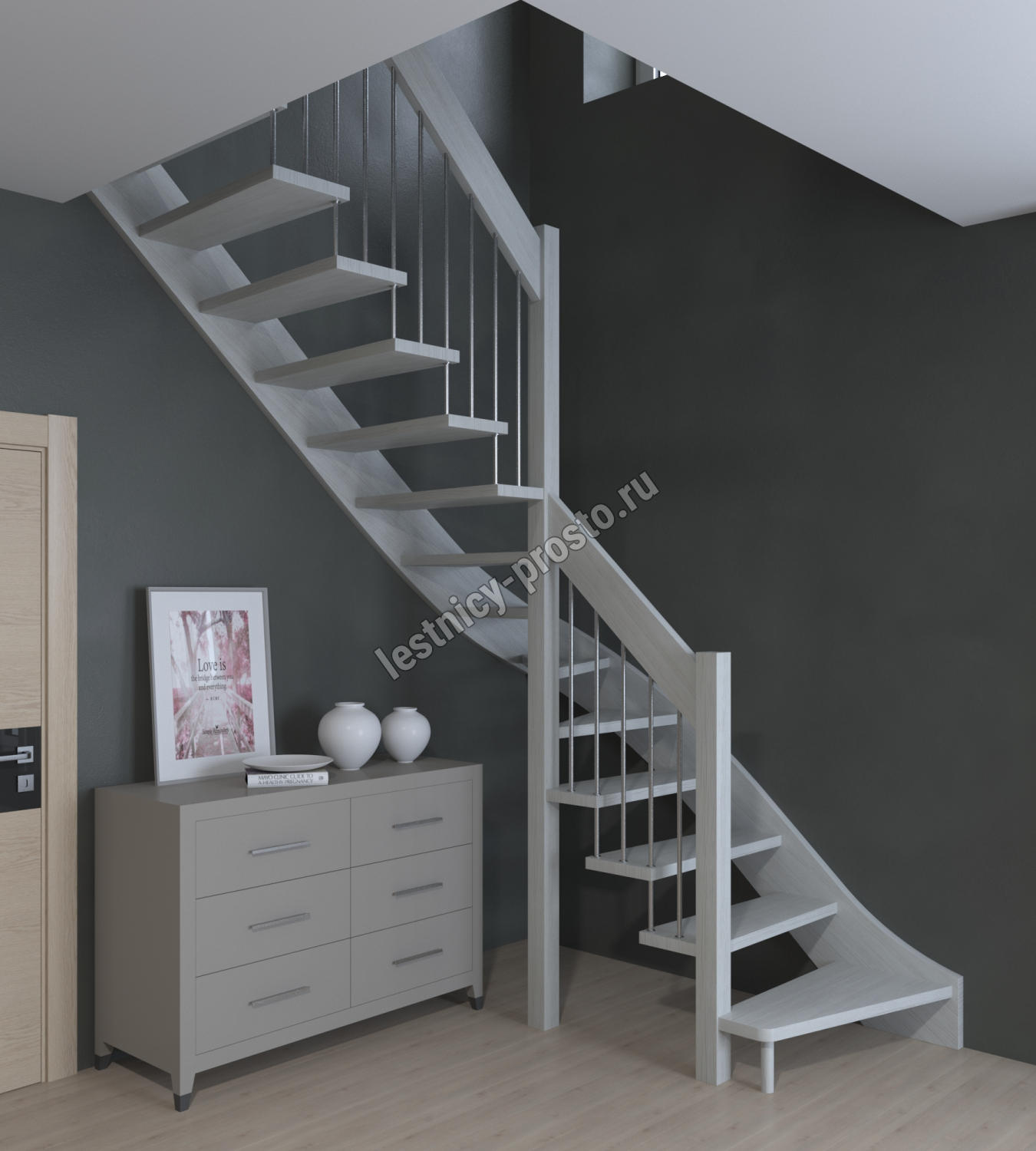 Лестница Prosto Console г-образная забежная ясень, h247.5 см (10 ступеней)