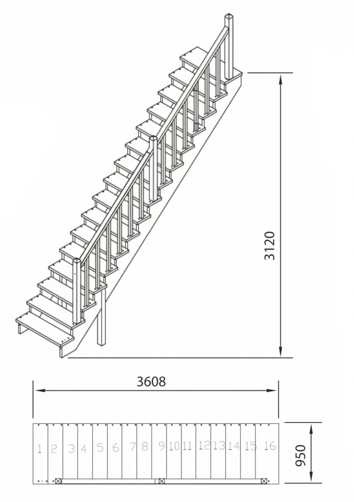 Данная лестница изготавливается под заказ в течении 4-5 недель. Возможно изготовление этой модели с другими размерами, подходящими под параметры вашего помещения. Базовое ограждение можно заменить на кованое или точеное. Ступени можно дополнить подступенями, бортиками, миниподступенями. Возможна установка лекальной (пригласительной) ступени. У лестницы комфортная высота шага, удобный широкий марш и угол подъема.