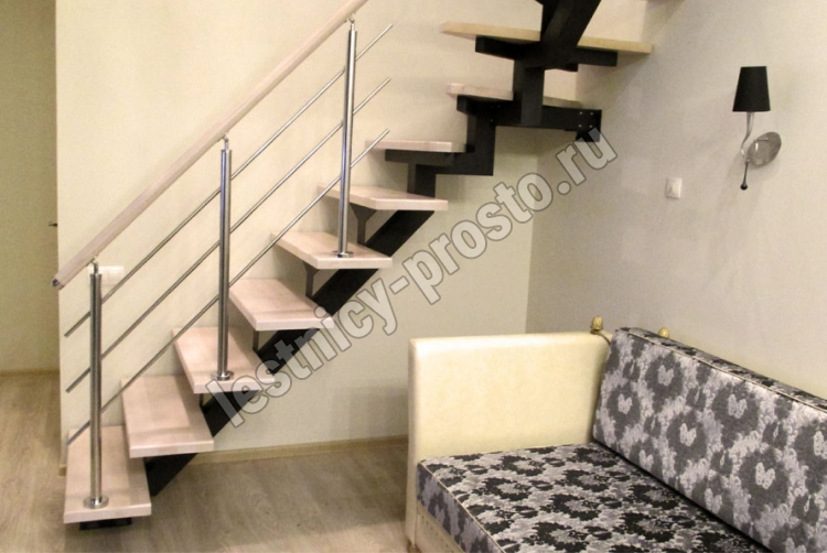 Комплект ограждений для П-образной лестницы PROSTO MONO из 11 ступеней.