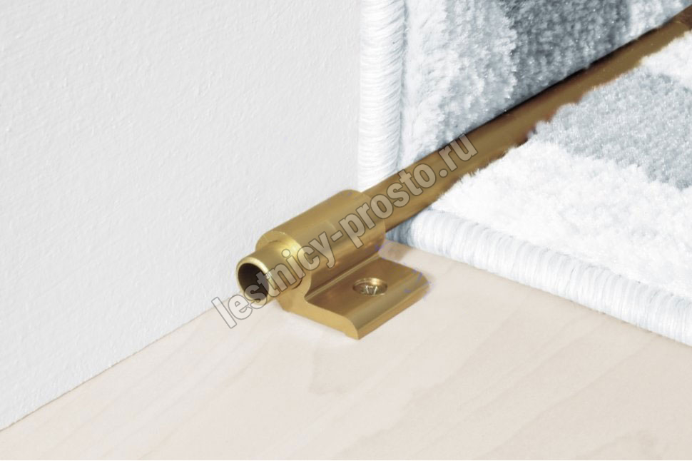 Ковродержатель комплектуется двумя держателями из алюминия цвета золото, а также алюминиевой трубкой цвета золото, длиной от 136 до 160 см.