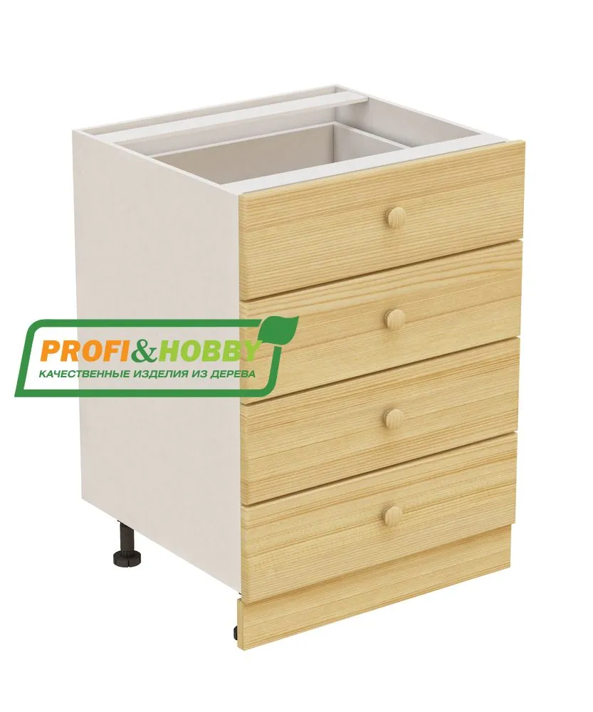 Тумба 4 ящика 600х530х720 + фасад сосна без покраски