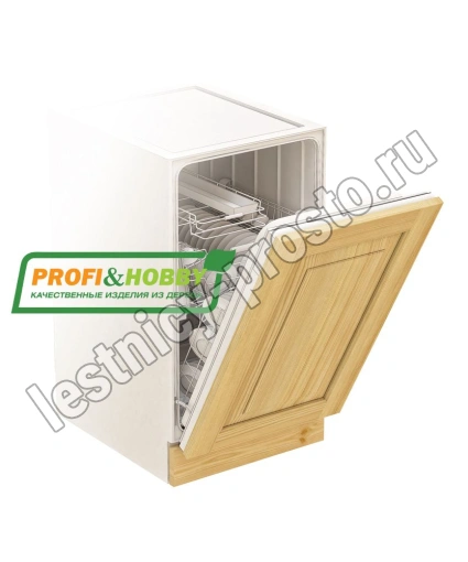 Фасад для посудомоечной машины изготовлен из 100% массива дерева, без шпона и без МДФ/ДСП.