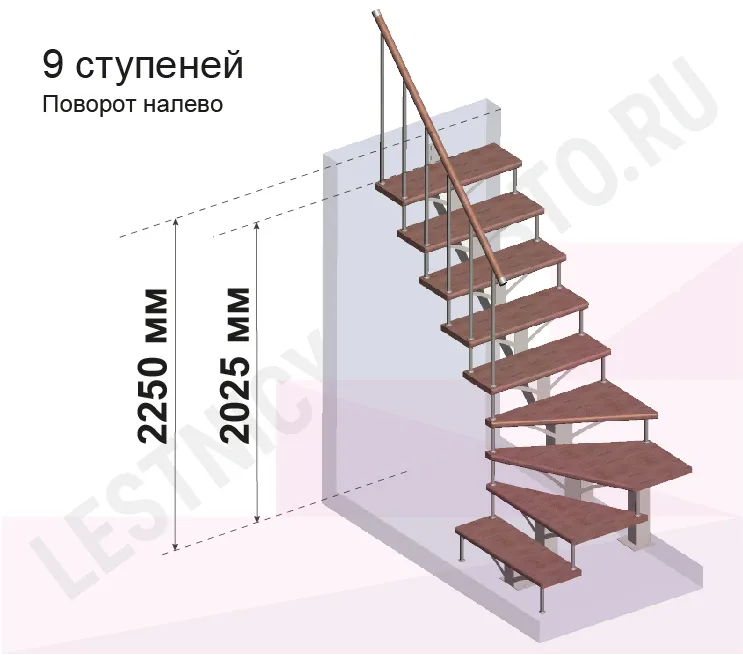 Лестница PROSTO MONO Г-образная h225 см, ступени бук