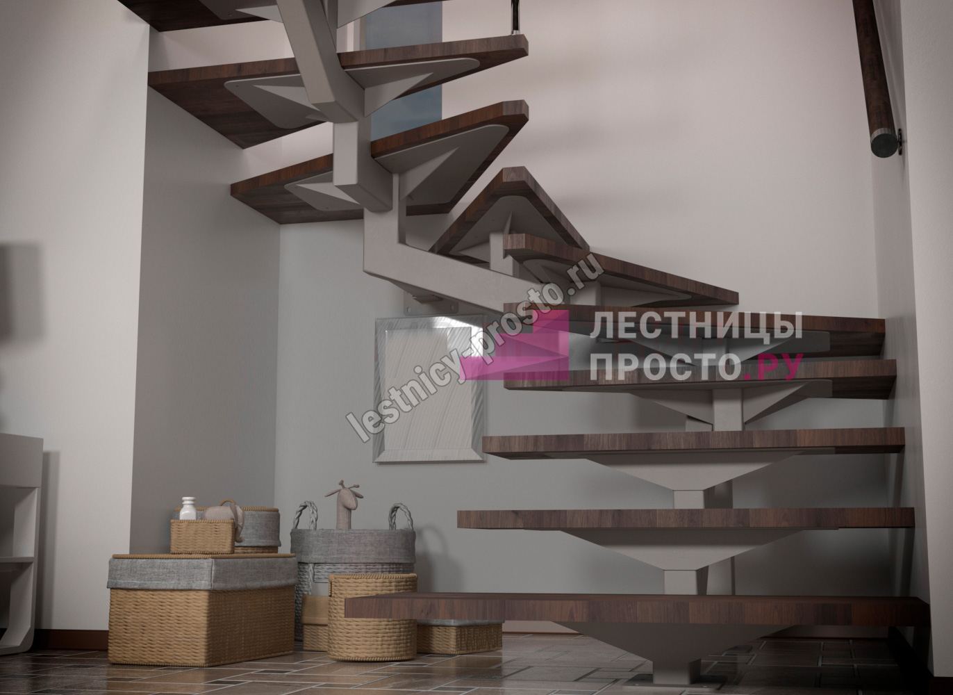 Металлический каркас лестницы PROSTO MONO STEP CLASSIC п-образная забежная с ограждением