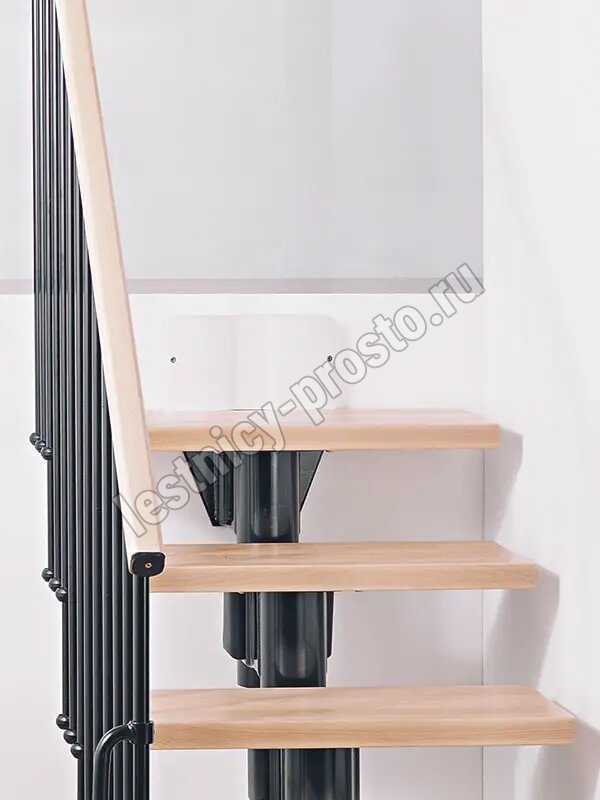 При монтаже этой лестницы, возможно регулировать высоту и глубину шага, таким образом можно получить лестницу под высоты этажа в диапазоне 2250 - 3030 мм, кроме того, установив дополнительный комплект увеличения высоты, можно поднять высоту лестницы до 3730 мм. Ширина проступи регулируется при монтаже в пределах 180 - 220 мм. Каркас и стойки ограждения выполнены из пластифицированного металла. Уникальный модульный каркас позволяет собрать лестницу необходимой формы.