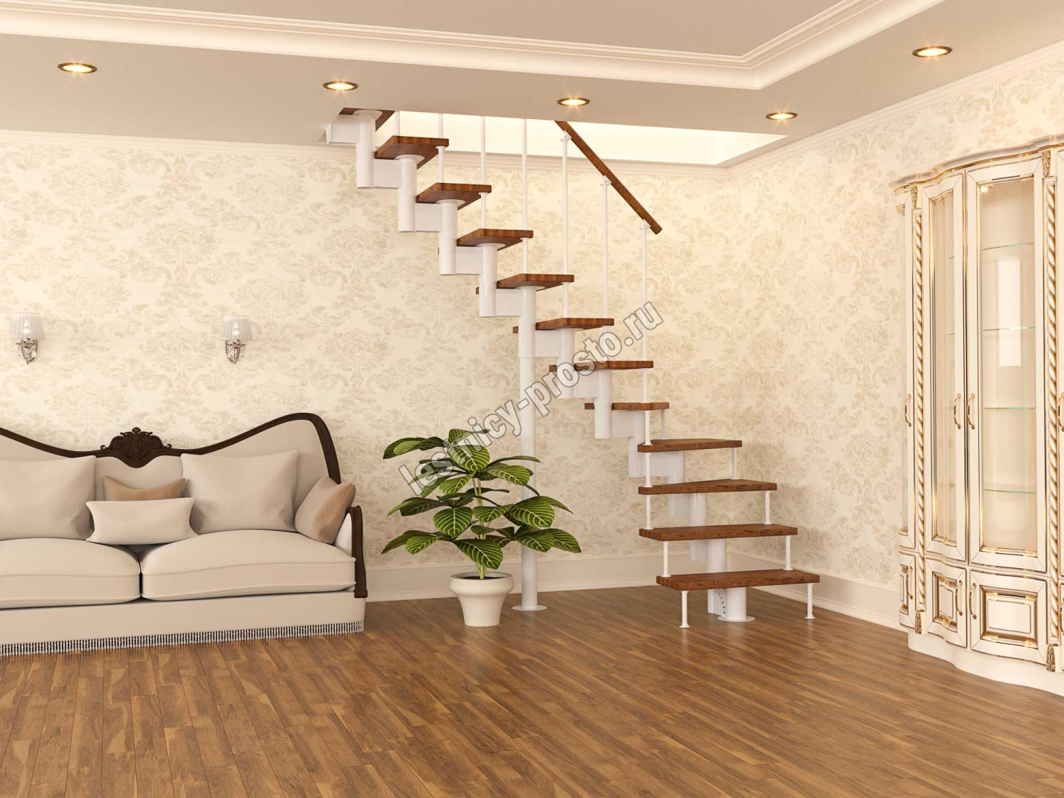 Модульная лестница PROSTO MODULE Г-образная, h270, лиственница