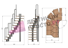 Лестница Prosto Urban Black гусиный шаг 700 мм, h198-288 см (11 ступеней), дуб