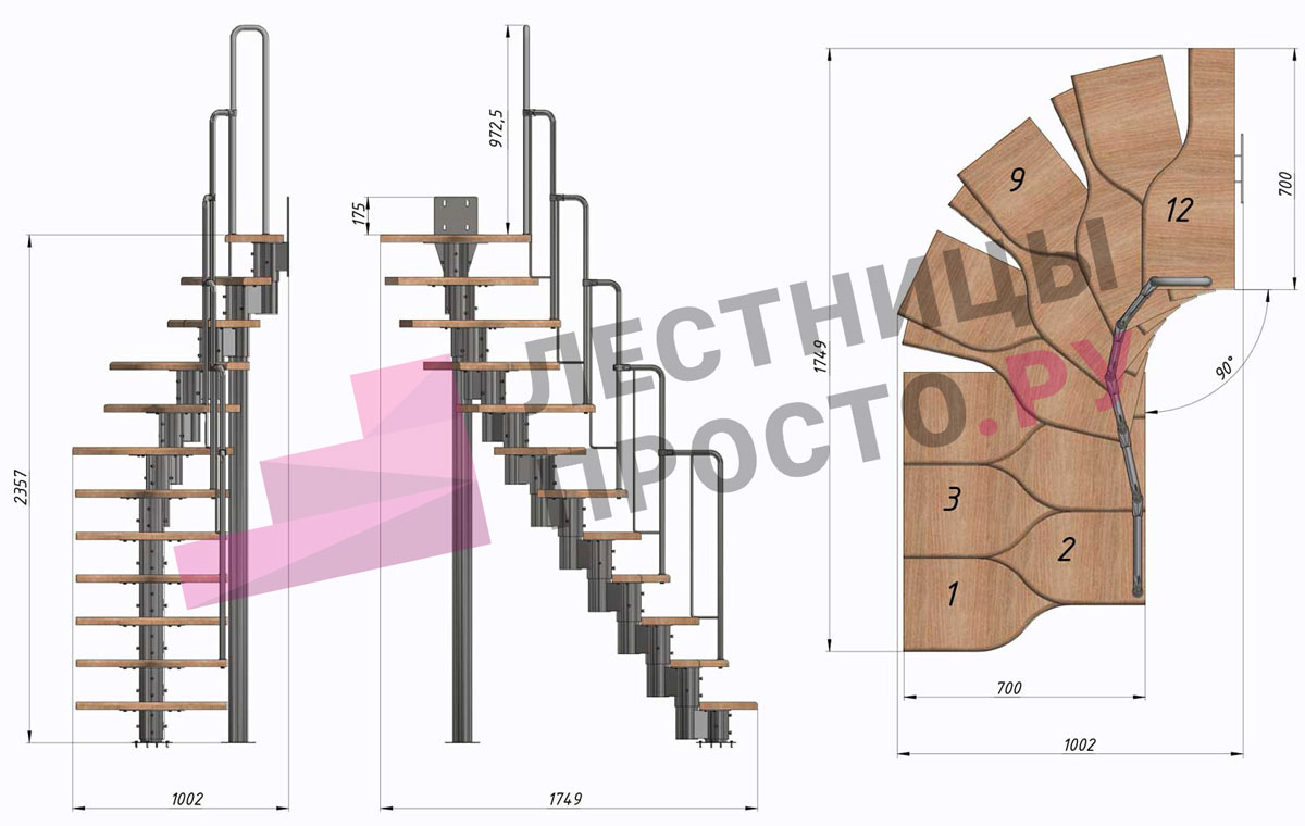 Высота лестницы 2160 - 3120 (12 ступеней) мм
