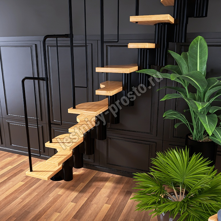 Лестница Prosto Urban Black гусиный шаг 700 мм, h216-312 см (12 ступеней), ясень