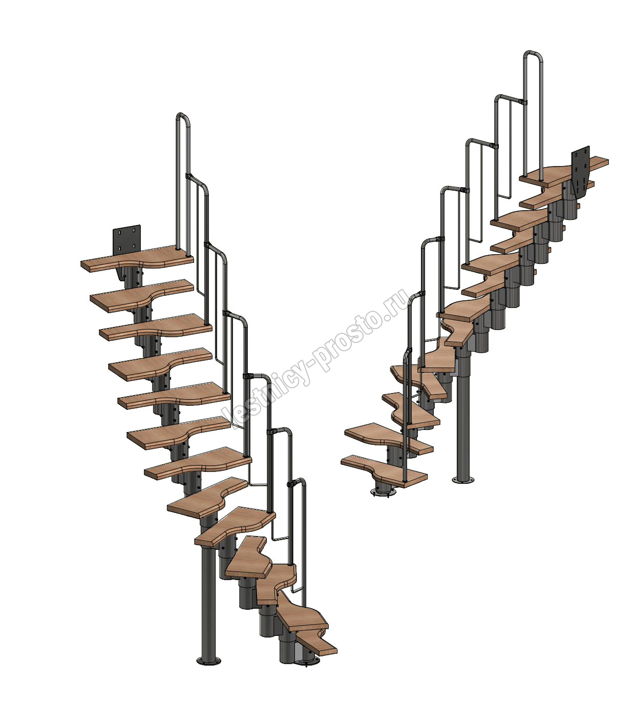 Лестница Prosto Urban Black гусиный шаг 700 мм, h234-336 см (13 ступеней), дуб