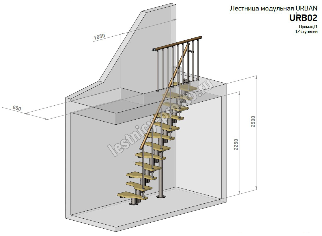 Высота лестницы 2340 - 3360 (13 ступеней) мм