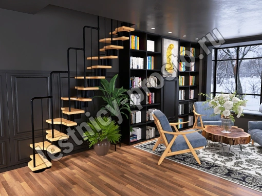 Лестница Prosto Urban Black гусиный шаг 700 мм/Ступени из срощенного ясеня