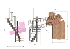 | Лестница Prosto Urban Black гусиный шаг 700 мм, h198-288 см (11 ступеней), бук |