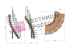 Лестница Prosto Urban Black гусиный шаг 600 мм, h198-288 см (11 ступеней), дуб