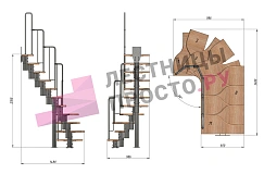 Лестница Prosto Urban Black гусиный шаг 600 мм, h198-288 см (11 ступеней), ясень