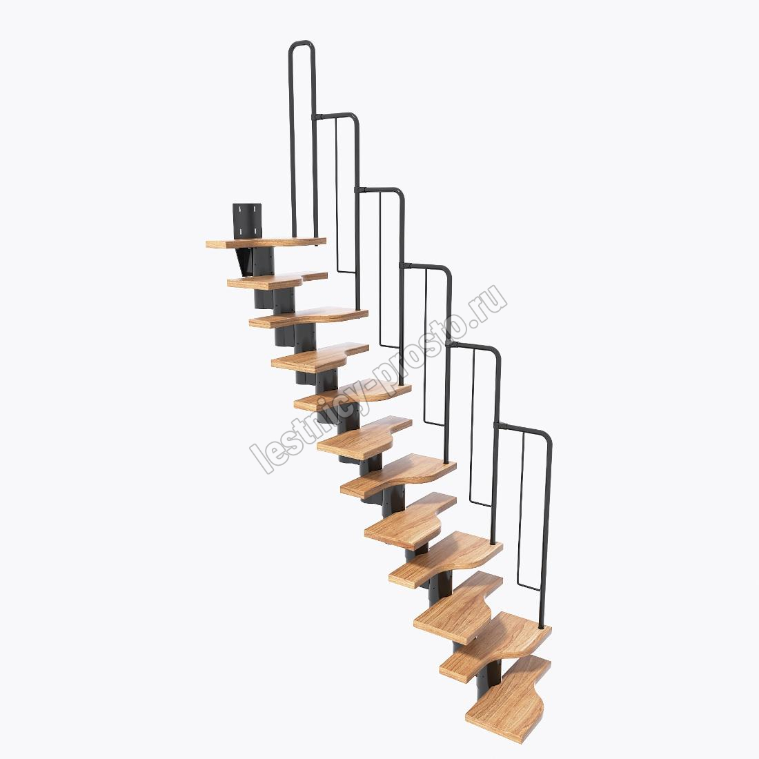 Лестница Prosto Urban Black гусиный шаг 600 мм, h216-312 см (12 ступеней), бук
