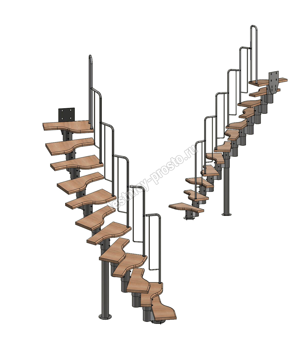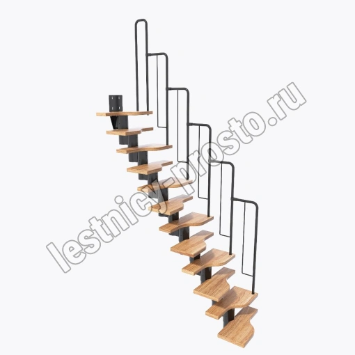 Лестница Prosto Urban Black гусиный шаг 600 мм, h216-312 см (12 ступеней), дуб