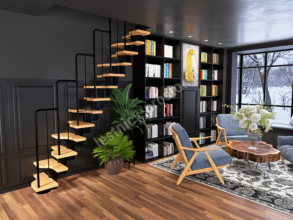 Лестница Prosto Urban Black гусиный шаг 600 мм/Ступени из срощенного дуба