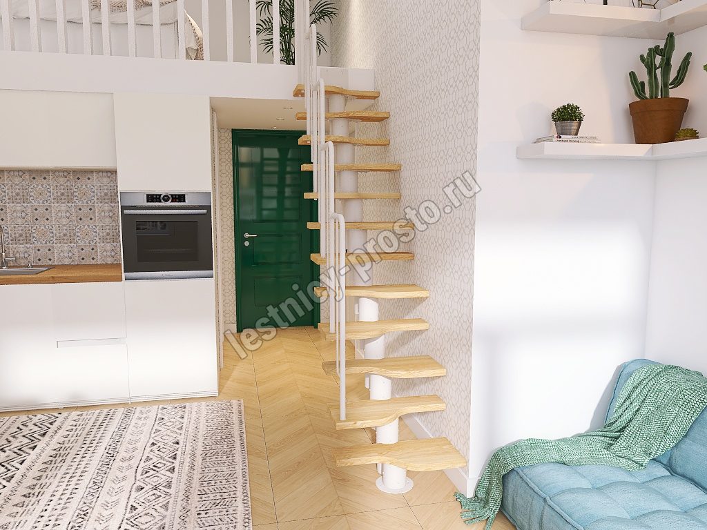 Лестница Prosto Urban White гусиный шаг 700 мм, h180-264 см (10 ступеней) берёза мультиплекс
