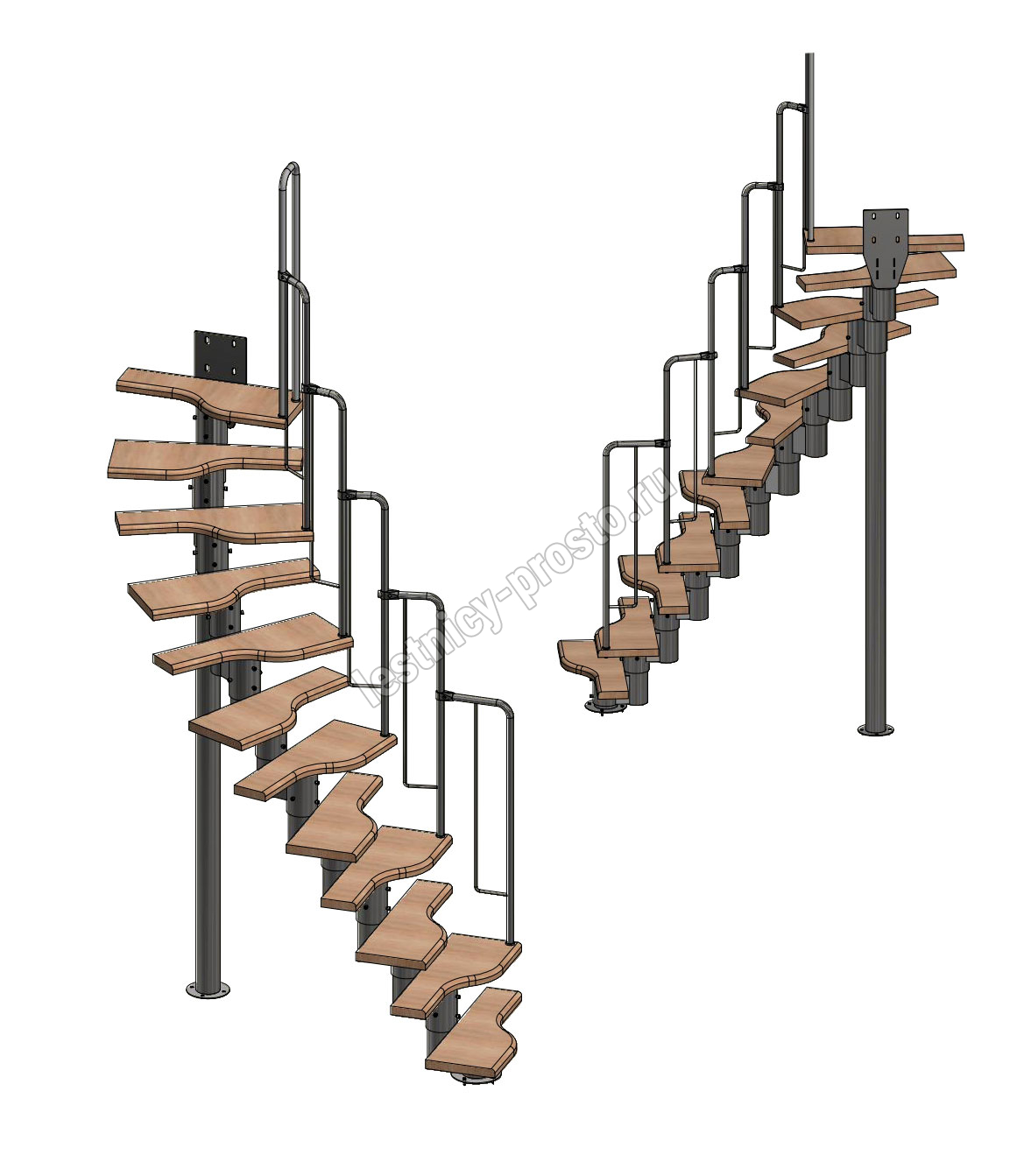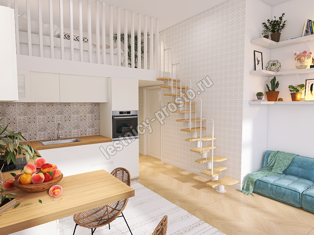 Лестница Prosto Urban White гусиный шаг 700 мм, h216-312 см (12 ступеней), бук
