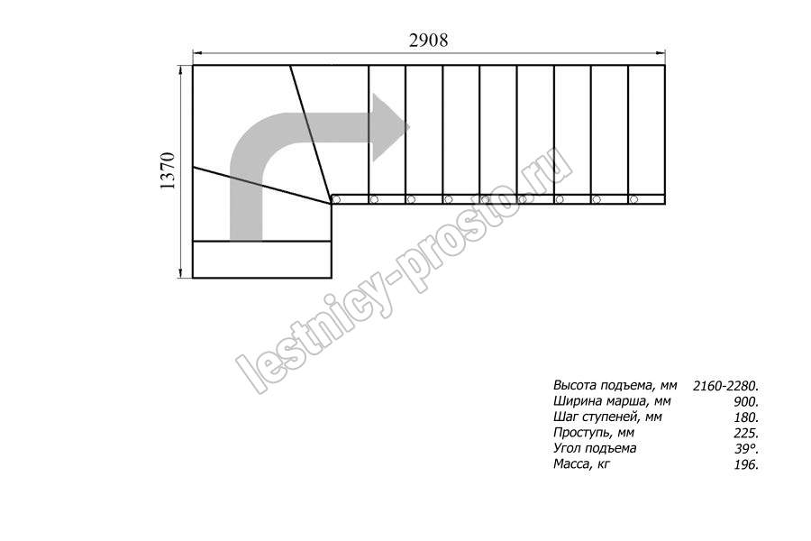 Модульная лестница Фаворит 180 2160-2280, Серый, Сосна, Крашеная, Без Ступений